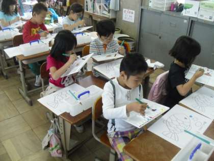 来週も,学習するのが楽しみな子どもたちです。練習しながら,絵の具に慣れていってほしいと思います。