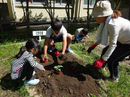 どんな野菜を育てるか,みんなで考え,いよいよ今日,決まった野菜の苗を植えました。