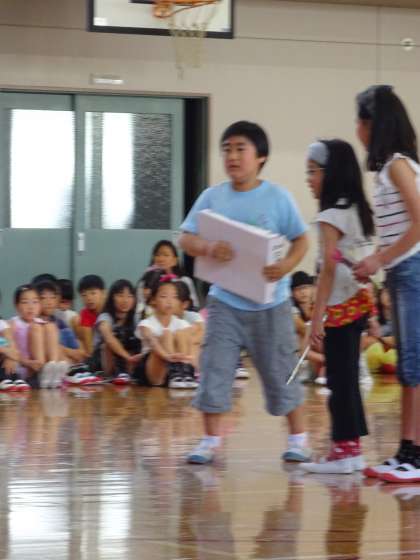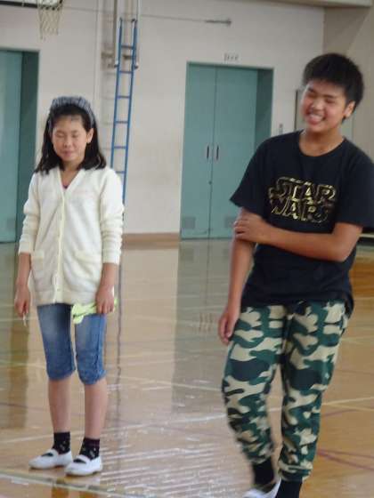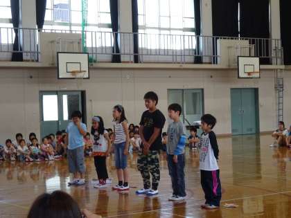 「1年生をむかえる会」でくすのき学級の発表をしました。1年生に向けて,元気が出るように,みんなで選んだ「勇気100パーセント」の歌を歌いました。その後,ひとりずつが自分で考えた,元気の出るポーズをしました。