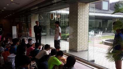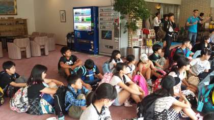 わずか1泊でしたが,楽しい修学旅行の一夜をすごしたホテルともお別れです。退館式を終えて四国の金毘羅さんを目指して出発します。