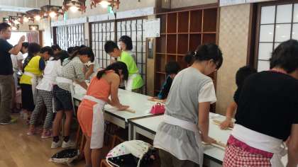 香川県琴平に到着しました。午前中は,「中野うどん学校」でうどん作りの体験です。どのようなうどんが出来上がるのか,とても楽しみです。