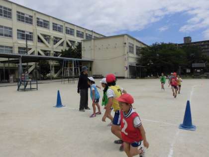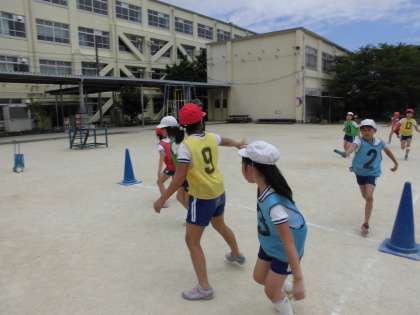 鉄棒学習の後は,リレー学習です。
