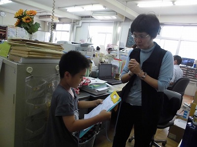 生活科「なかよしいっぱいだいさくせん」の学習で、今日と明日、仲良くなりたい先生の所にインタビューに行っています。今日インタビューをした人たちは、ドキドキしながらも、みんなとっても楽しかったようです!ニコニコ顔で帰ってきました。