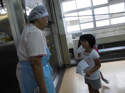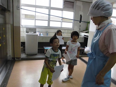 1年生は今日も仲良くなりたい先生の所にインタビューに行ってきました。写真は給食調理員さんにインタビューしているところです。「何人分の給食を作っているんですか?」などと、上手に質問していました!