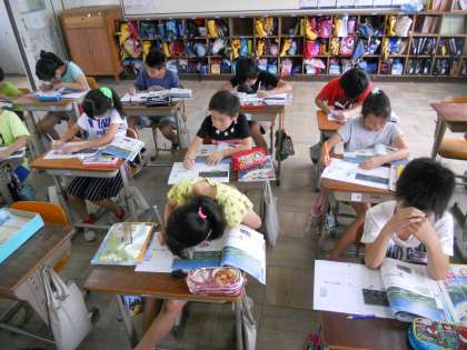 社会では,地図やグラフを読み取ってわかったことを書く作業を取り入れています。
