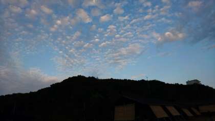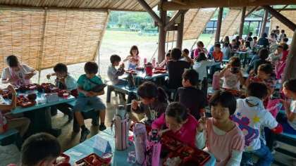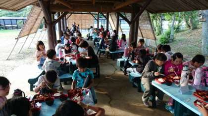 暑かった午後も、夕方になると海からの風が大変心地よくなりました。気持ちいい風に吹かれながら、芝生広場の東屋で夕食をいただきました。