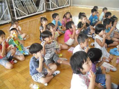 歯科衛生士さんに来ていただき,歯磨き指導を行いました。