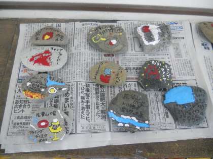 石のペイント完成です!! 公開日 2016/09/05 更新日 2016/09/05 5年生の部屋 金曜日に取り組んだ「石のペイント」が完成しました。 カラーテックスがきれいに乾燥し,山の家の思い出が詰まった素晴らしい作品となりました。 自由参観日の時にも,教室の後方に掲示しておこうと思いますので,ぜひご覧ください。