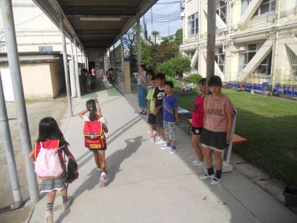 今日は雨模様で,渡り廊下でのあいさつとなりましたが,今日担当の子どもたちも元気よくあいさつをしてくれました!!
