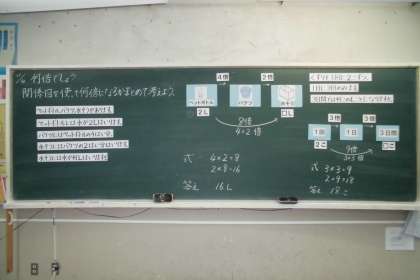 算数の学習では,「重さ」や「何倍でしょう」の学習を行いました。