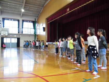 15日(火)の音読発表の練習をしました。教室で練習した時と違って友だちが遠くなるので,声を合わせるのが難しかったりしましたが,おおきな声でやる気はいっぱいです!みんなで言うセリフのところを忘れてしまった人もいたので,この土日もしっかり練習してほしいと思います。本番,成功するように頑張りましょう☆