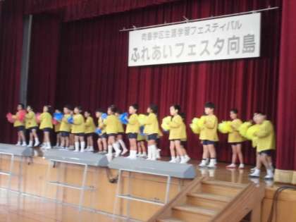 今日は,向島学区生涯学習フェスティバルの日。朝早くから地域諸団体の皆様,PTA役員の皆様に御準備いただき開会式を迎えました。オープニングは,向島保育園年長組園児さんによる歌と踊り。かわいいステージでした。2番目は向島小学校鼓笛・合唱団による発表。発表する度に上手になってきています。午前中最後はなんと70人の大ステージ。すばる高校吹奏学部による演奏でした。演奏のスケールの大きさとアクティブな演奏に魅了されました。出演してくださった皆様,熱心にお聴きいただきました皆様ありがとうございました。