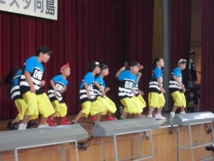 午後からはM's Houseによるダンス演技でした。すばらしい動きのダンスで,子どもたちは,日頃学校で見せている姿の何倍も大きく輝いてみえました。今日最後のステージは,向島東中学校吹奏楽部による演奏。少人数ながら,一生懸命演奏してくれました。東中の生徒さんは,午前中演奏してくださった,すばる高校の吹奏楽部に学びに行っているとおっしゃっていました。すばらしい演技・演奏の陰には,無限の練習があったことでしょう。向島学区の子どもたちの笑顔が学校中にあふれていました。今日,出演してくださった皆様,向島フェスティバル運営に携わってくださったみなさま,本当にありがとうございました。お疲れさまでした。