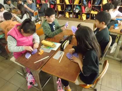 学習が本格的に始まりました。発言の仕方や,聞き方など,細かく確認しながら学習を進めています。国語では,「白いぼうし」の音読を,算数では,角度の勉強で使う,扇を作りました。新しい学習に,子どもたちはとても興味を持ち,張り切りながら取り組んでいます。