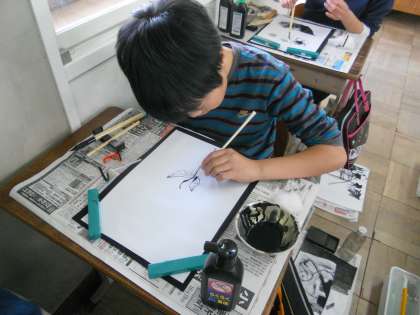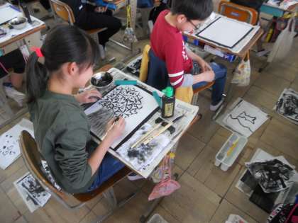 今日から図工の学習で,向島東中学校の川口先生に指導をしていただきました。