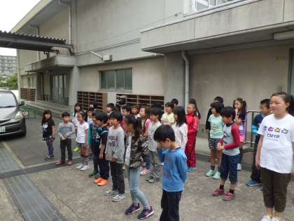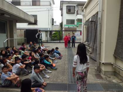 4年生は,劇を発表します。恥ずかしがらず大きな声で演技できるように練習しています。今日は,大きな声をだすために外でやってみました!