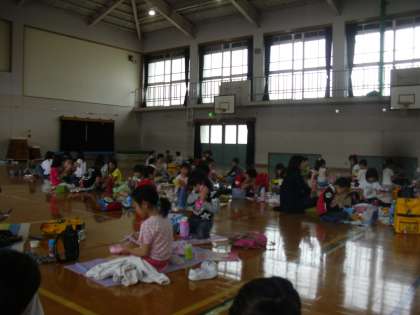 お弁当は,2年生のお兄さんやお姉さんと一緒に体育館で食べました。