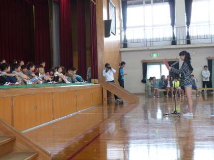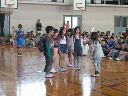 6年生に手をつないでもらっての入場から始まり,計画委員の人たちの進行で,今日,1年生を迎える会を実施しました。どの学年の発表からも「学校って,こんなに楽しいところだよ」とか,「困った時には相談してね」という1年生への温かいメッセージが伝わってきました。