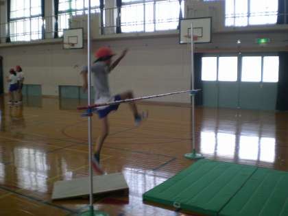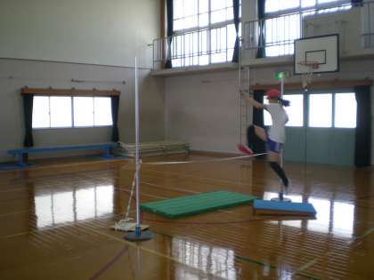 体育の学習で,「走り高とび」をしています。