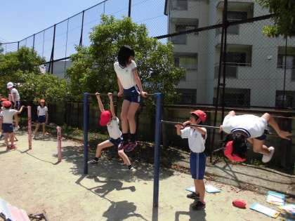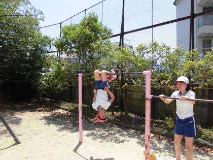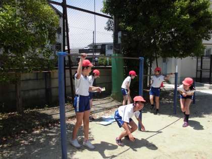 鉄棒学習 公開日 2017/05/16 更新日 2017/05/16 5年生の部屋 最近急に温かくなり,日中は汗ばむほどの 陽気になってきました。 今日は,体育で鉄棒学習をしました。 いいお天気の中,子どもたちは自分の出来る技から挑戦し 少しずつレベルを上げ,難しい技にも 挑戦していました。 学習が終わるころには,手に豆ができている子もいました。 ひとつでも多くの技ができるようにがんばっていこうね!