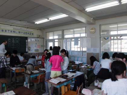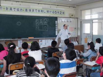 ポール先生と学習しよう 公開日 2017/05/18 更新日 2017/05/18 5年生の部屋 18日に,ポール先生に来ていただき 一緒に外国語の学習をしました。 ポール先生が来られるのを 楽しみにしているのに 先生の前だと恥ずかしいのか どうしても声が小さくなってしまいます。 それでも,みんな楽しそうに学習していました。