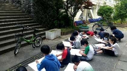 図工の時間に自転車のスケッチをしました。