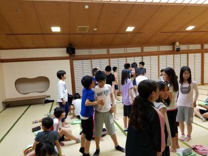 修学旅行の夜,みんなで集まって,ゲームをし,楽しく盛り上がりました。