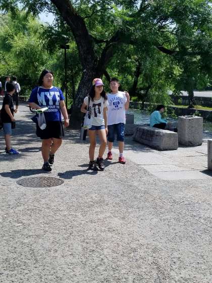 修学旅行の最後の行程になる,倉敷の美観地区に到着しました。ここでの散策・買物を終えると,後は,バスで京都に帰るだけとなります。出発の時は,雨が降っていましたが,そのあとは順調に進んできた旅行も,残りわずかとなってきました。旅の名残を惜しみながら,お土産を買っています。