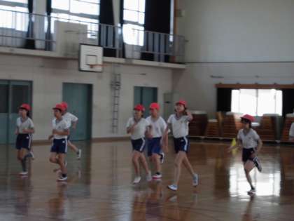 友だちの記録を聞いて,拍手をする。