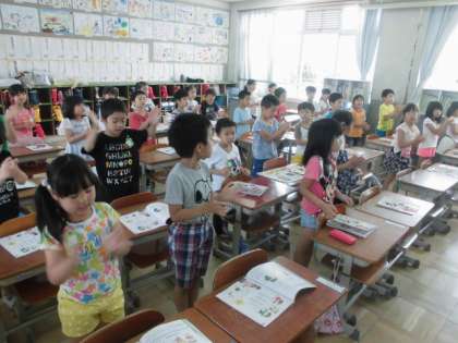 毎朝,1年生は元気いっぱいに歌っています。