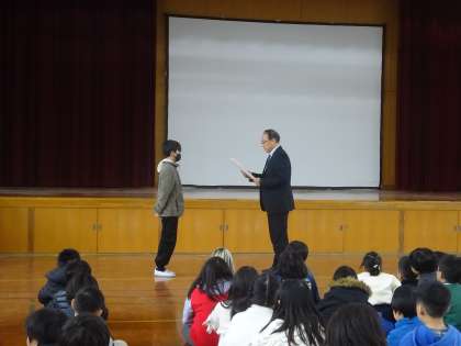 また、たくさん表彰もあり、2学期のがんばりを全校でたしかめることができたいい式になりました。