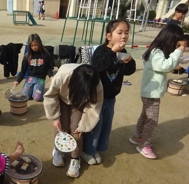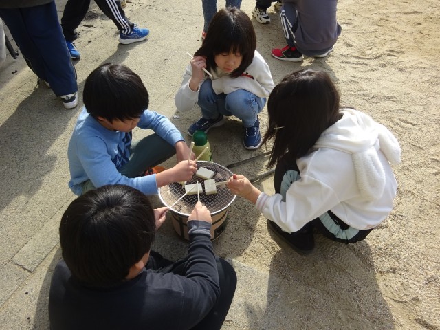今日は七輪を使っておもちを焼きました。火をつけるところから友だちと協力して楽しそうでした。