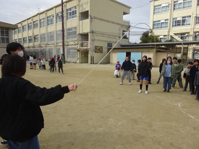 昼休みにフレサ(異学年交流)で大縄練習をしました。