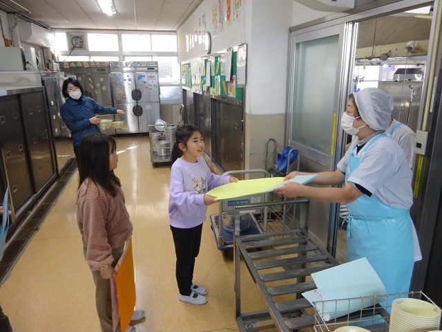 給食週間「おいしい給食ありがとうございます」 公開日 2026/02/13 更新日 2026/02/13 学校の様子 給食週間がありました。給食調理員さんはもちろんのこと、給食を食べることができるのは、いろいろな人たちのおかげです。子どもたちは、感謝の一言をそえてメッセージをプレゼントしました。各クラスからのメッセージは職員室前に掲示をする予定です。