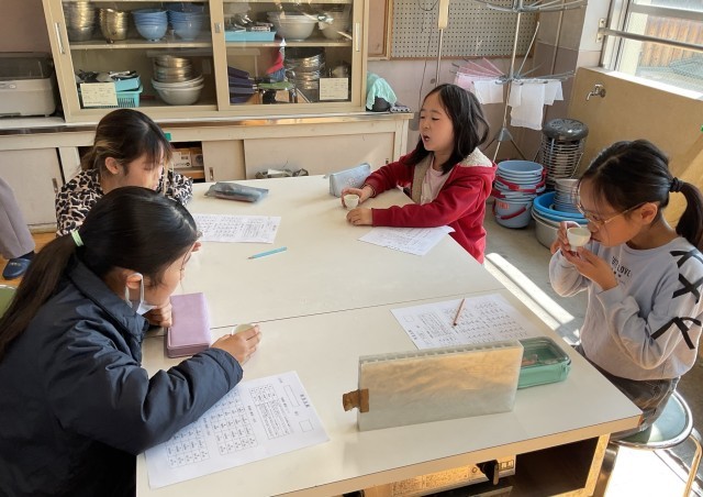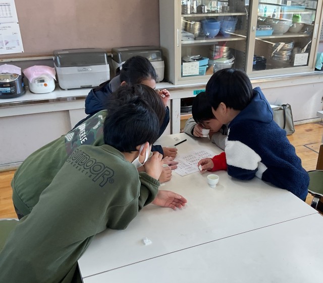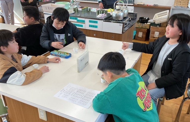 4年 茶香服 公開日 2026/03/12 更新日 2026/03/12 学校の様子 4年生は総合的な学習の時間に一年かけてお茶の学習を進めてきました。今回は最後の学習で茶香服(5種類のお茶の飲み比べ)を行いました。子どもたちは五感をフル活用して取り組んでいました。