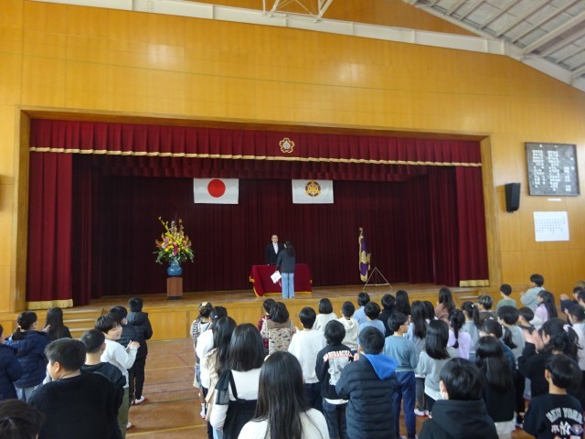 元気な姿で新年度を迎えられるよう、子どもたちに生活や安全についてお話しました。