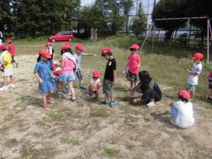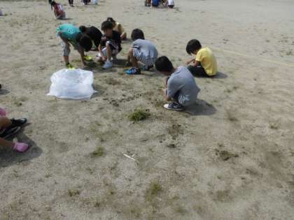 親子草ひきをしました。多数の保護者の方にも参加いただき,ありがとうございました。次回は,8月31日です。