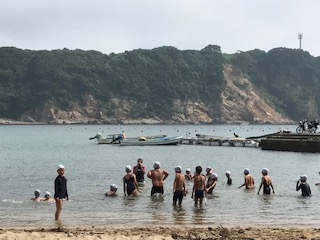 練習したクロールで泳いでみたり、魚をつかまえてみたりと楽しんでいます。水がしょっぱい!と海を満喫しています。