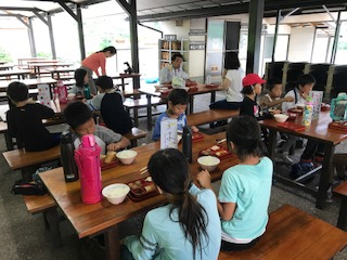 海水浴から帰ってきて,お腹が空いていたようです。ご飯をおかわりする子もいました。