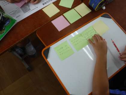 気付いたことをふせんにどんどん書いていき,似ている意見をまとめていきます。