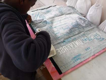 家庭科の学習では,エプロンづくりを進めています。