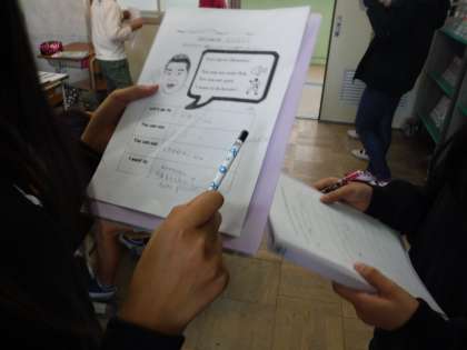 子どもたちは,友達同士で自分の行ってみたい国について英語で伝え合い,楽しんで活動していました。