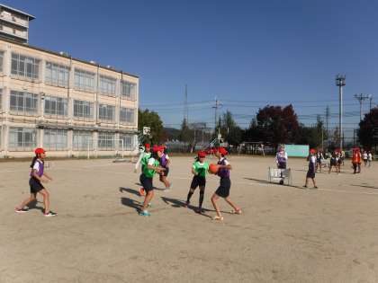 それぞれのチームで作戦を工夫し,うまくパスをつないでいけるよう学習を進めていきたいと思います。