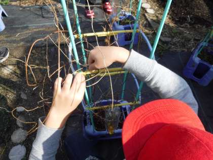 あさがおのつるを使ってクリスマスの飾りをつくることにしました。