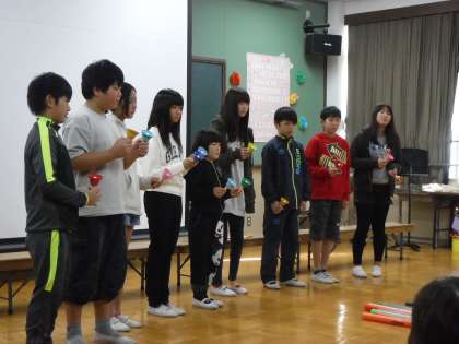 在籍人数の少ない4組ですが,6年生の優しいお兄さんお姉さんにお手伝いしてもらって立派に発表することができました。