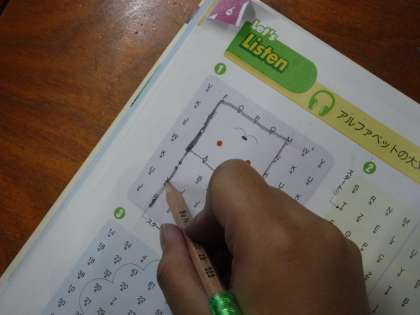 CDを聞いて言われたアルファベットを線でたどりながら・・・