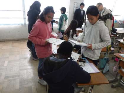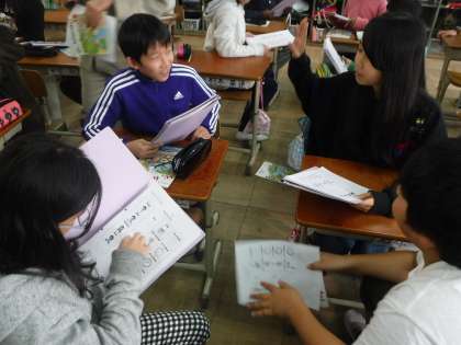 今日は,起きた時間や食事の時間を尋ねる表現を学習し,友達と交流しました。