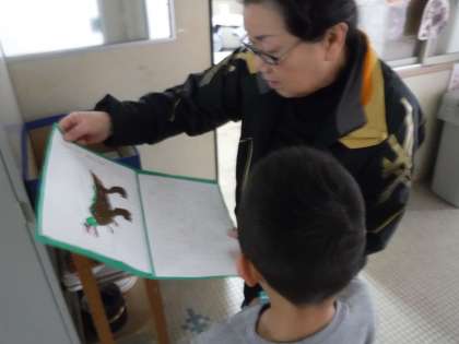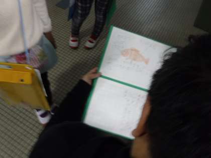 完成したものを,学校にいるいろんな人に見てもらっています。