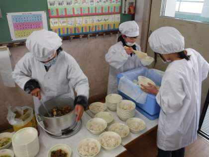 給食時間の配膳の様子です。
