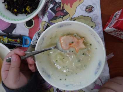 クリームシチューの中には,ハートの形と星の形の人参がいくつか